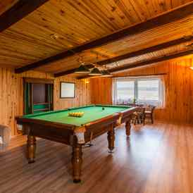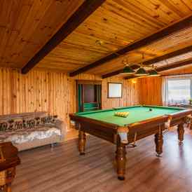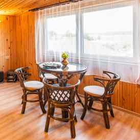 Для проживания гостей благоустроен двухэтажный коттедж со всеми удобствами. Здесь есть просторная гостиная с телевизором, DVD, караоке, музыкальным центром и камином, кухня с большим обеденным столом, два санузла и три изолированные спальные комнаты. В коттедже установлен теннисный стол, а с балкона открывается живописный вид на обширные просторы. Всего на ночлег здесь готовы принять до 15 человек. Кроме того, для любителей палаток найдется место и для размещения кемпинга.